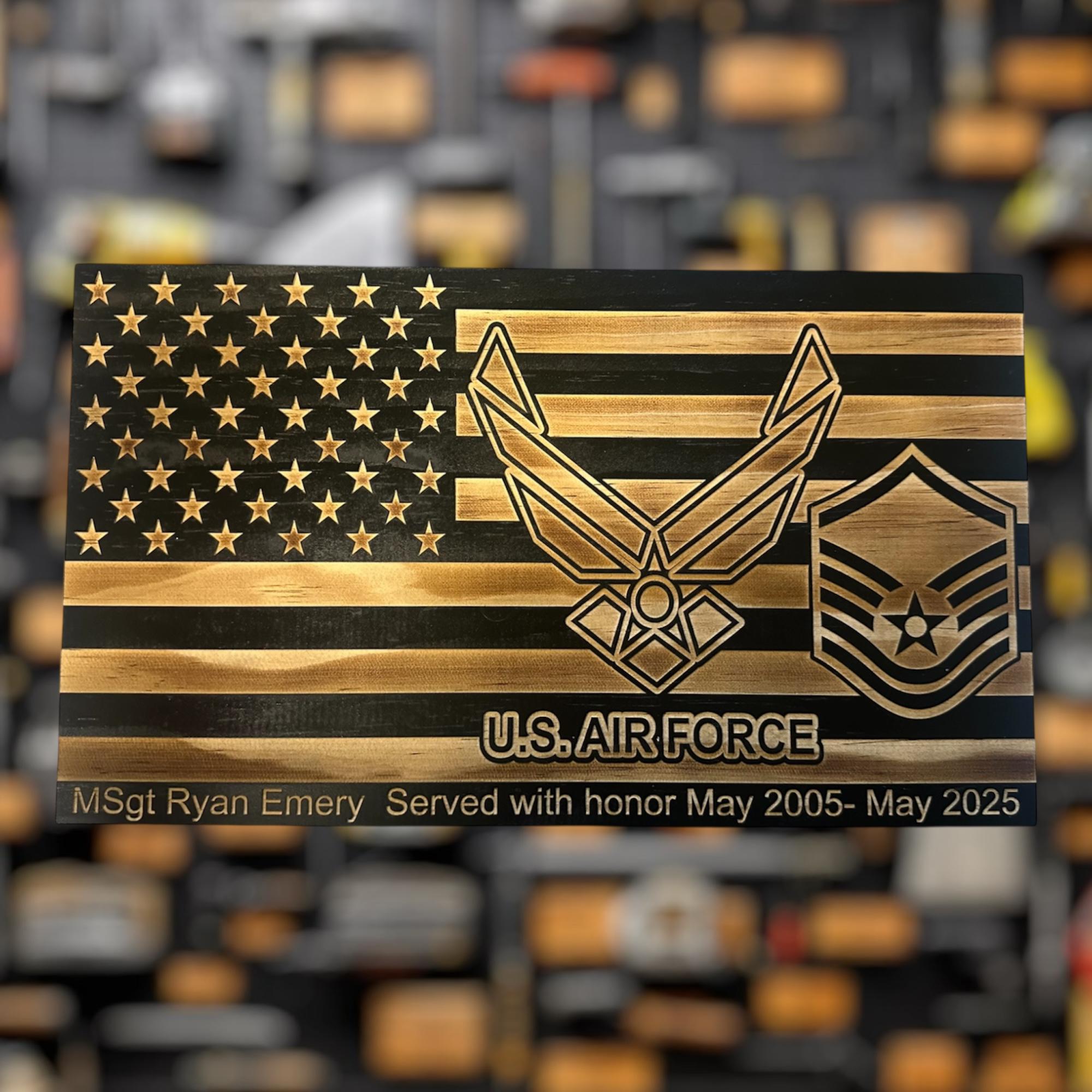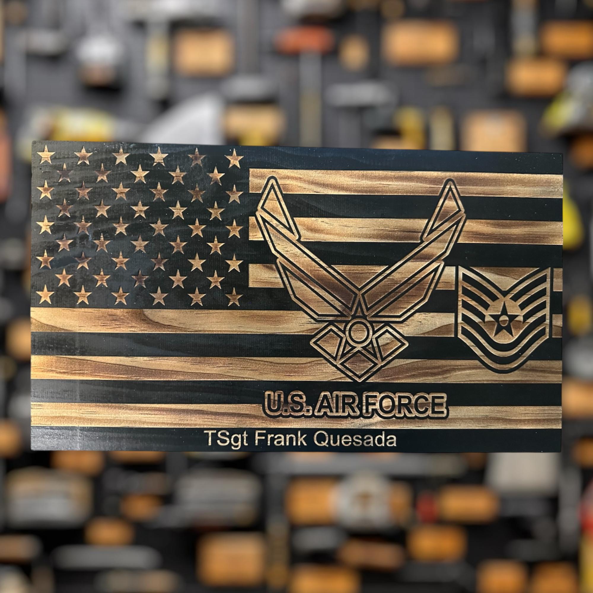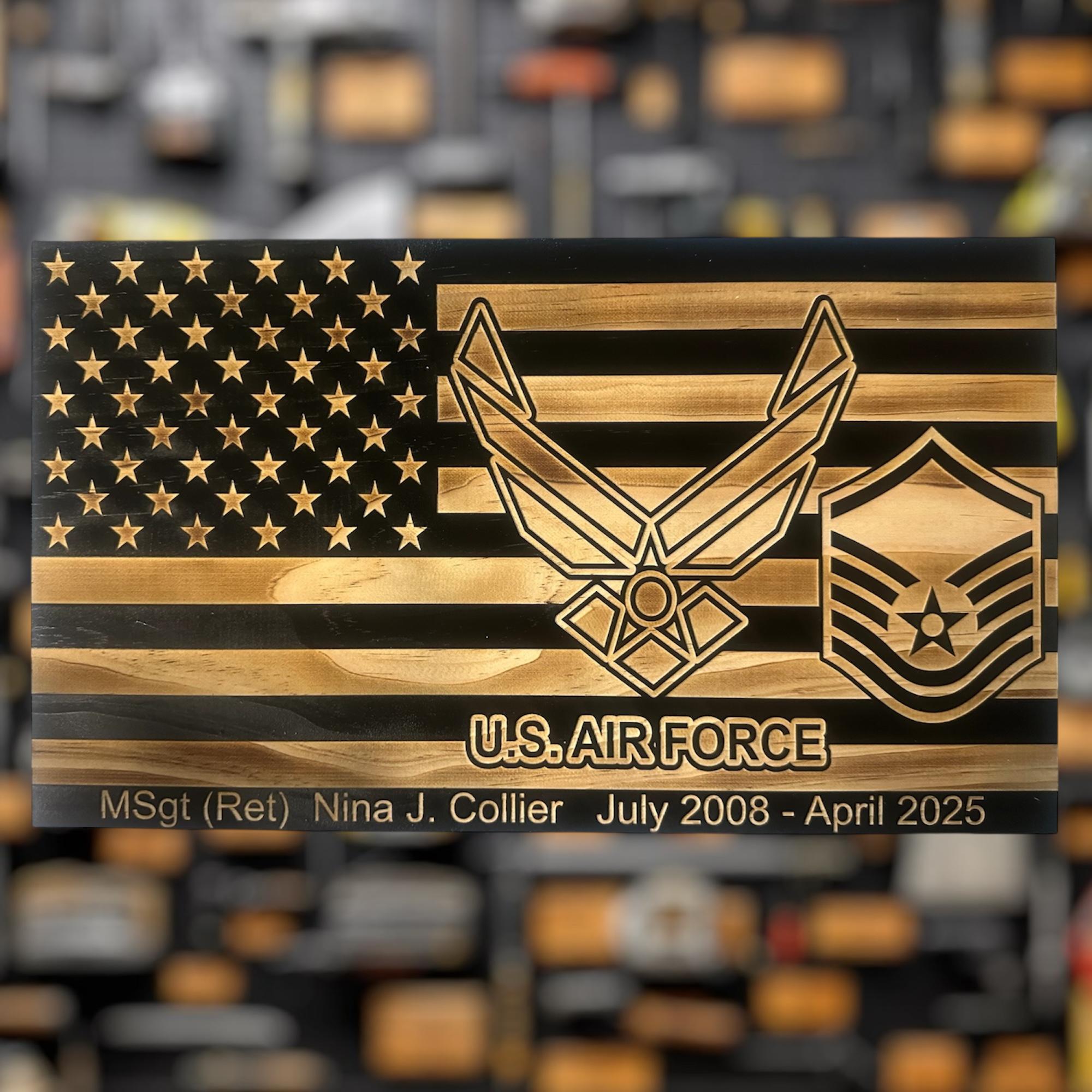 Our personalized Air Force Military plaque is perfect for any airman who is retiring, promoting, pcsing, or leaving service. Personalized with rank and text.