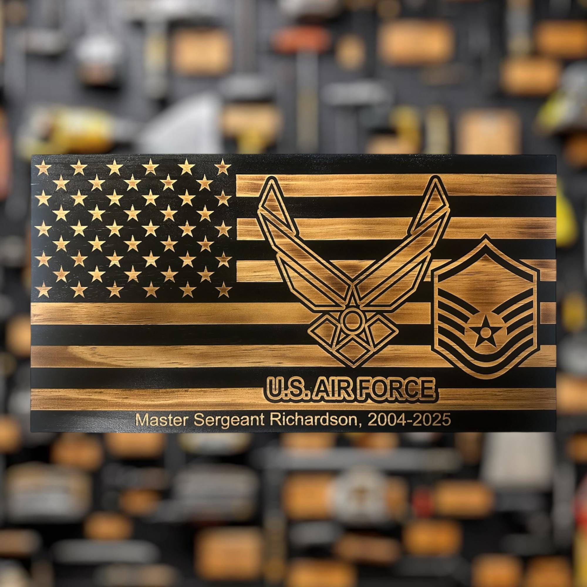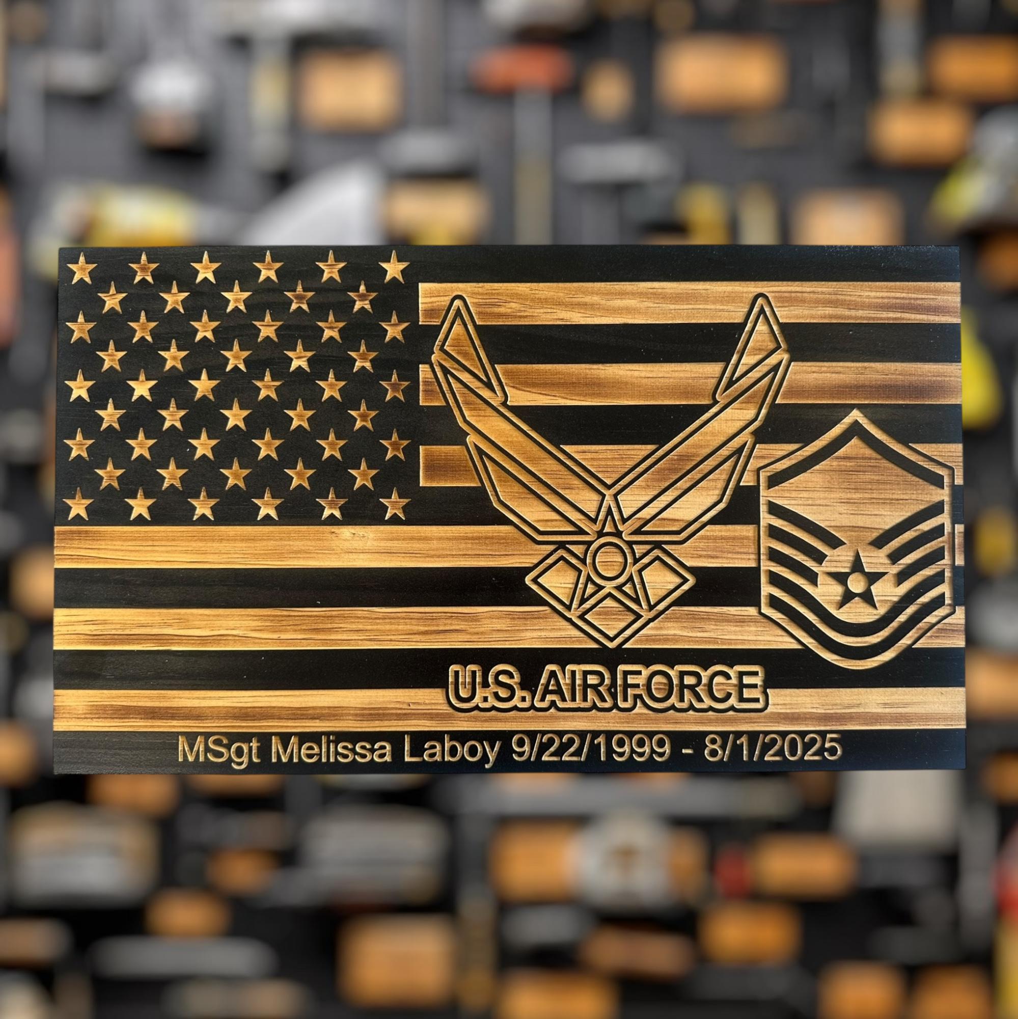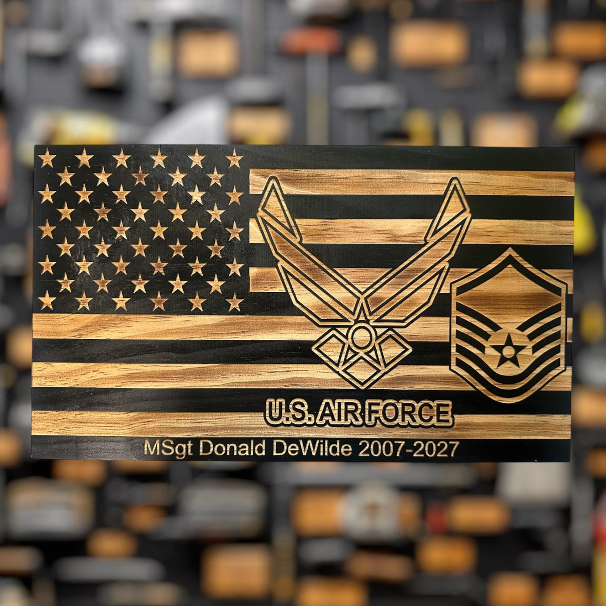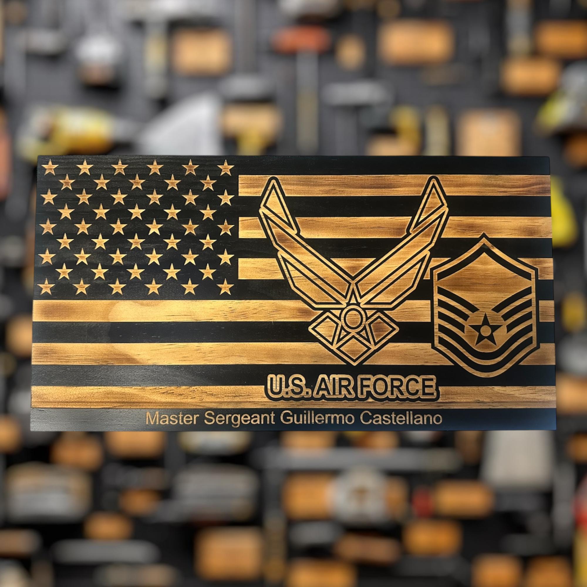 Our personalized Air Force Military plaque is perfect for any airman who is retiring, promoting, pcsing, or leaving service. Personalized with rank and text.