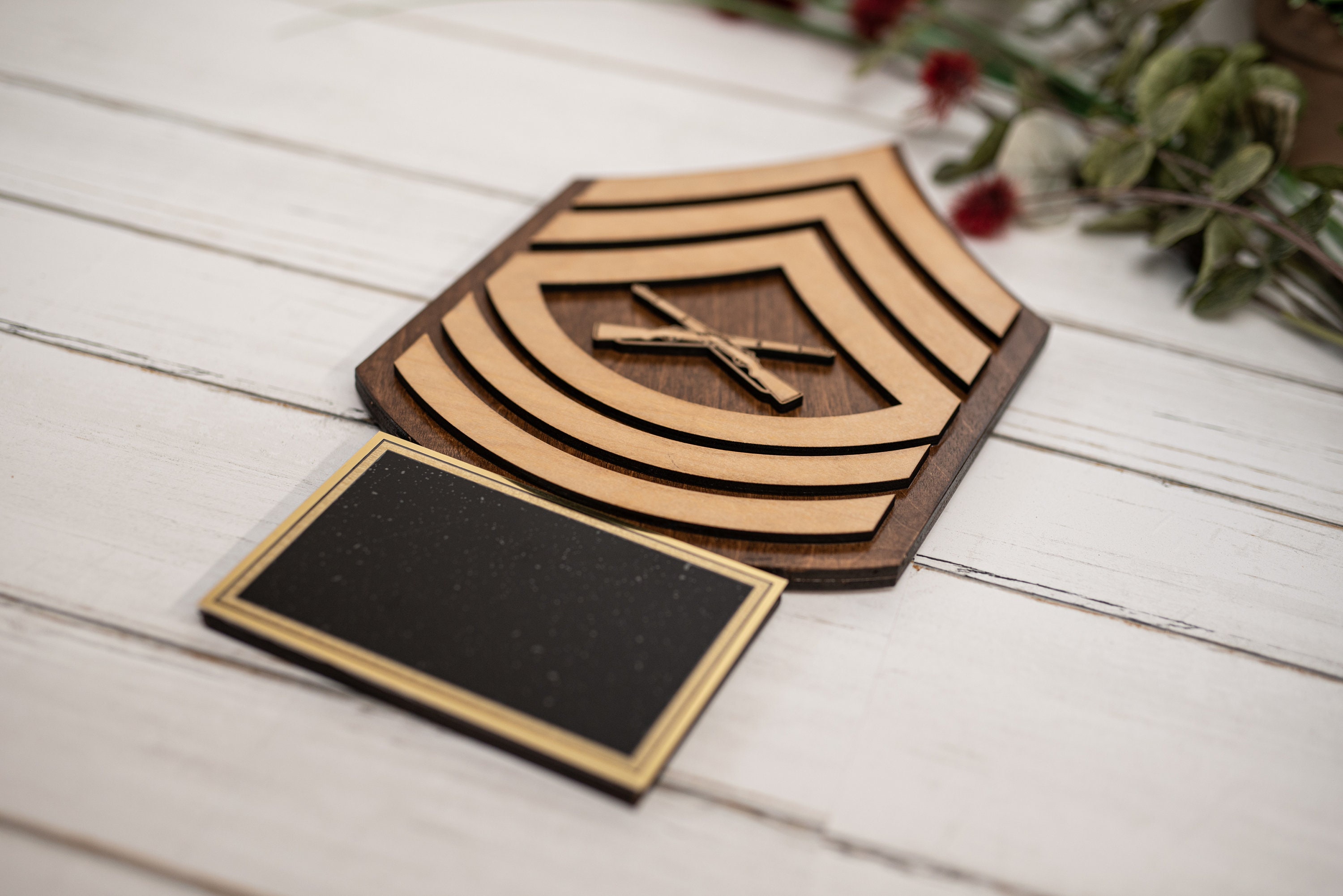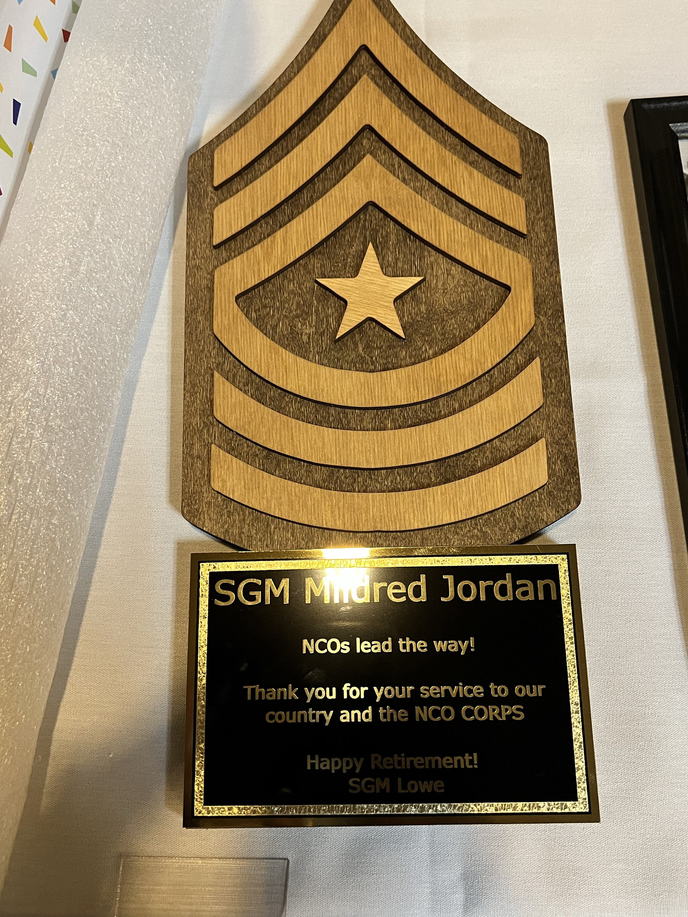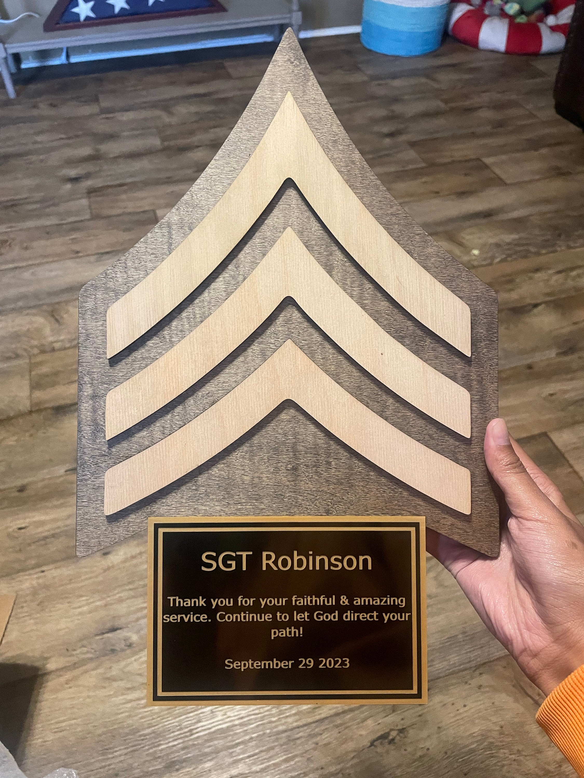 I would recommend this company 10/10. I honestly didn’t think the material would be what it was, so when i opened it, i was even more shocked and happy with my purchase. Plaque is sturdy, & looks very clean. Thank you so much for this amazing product. My bf loved it as his sergeant gift!