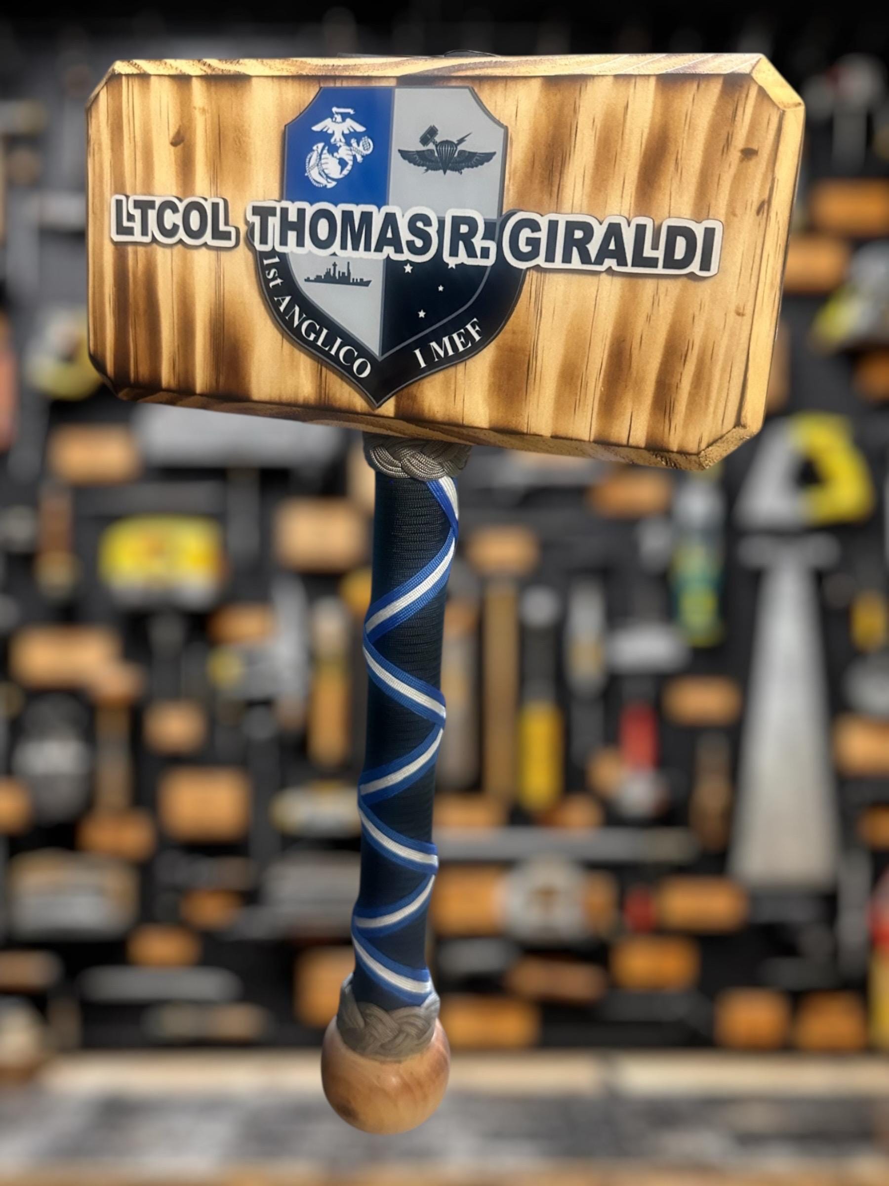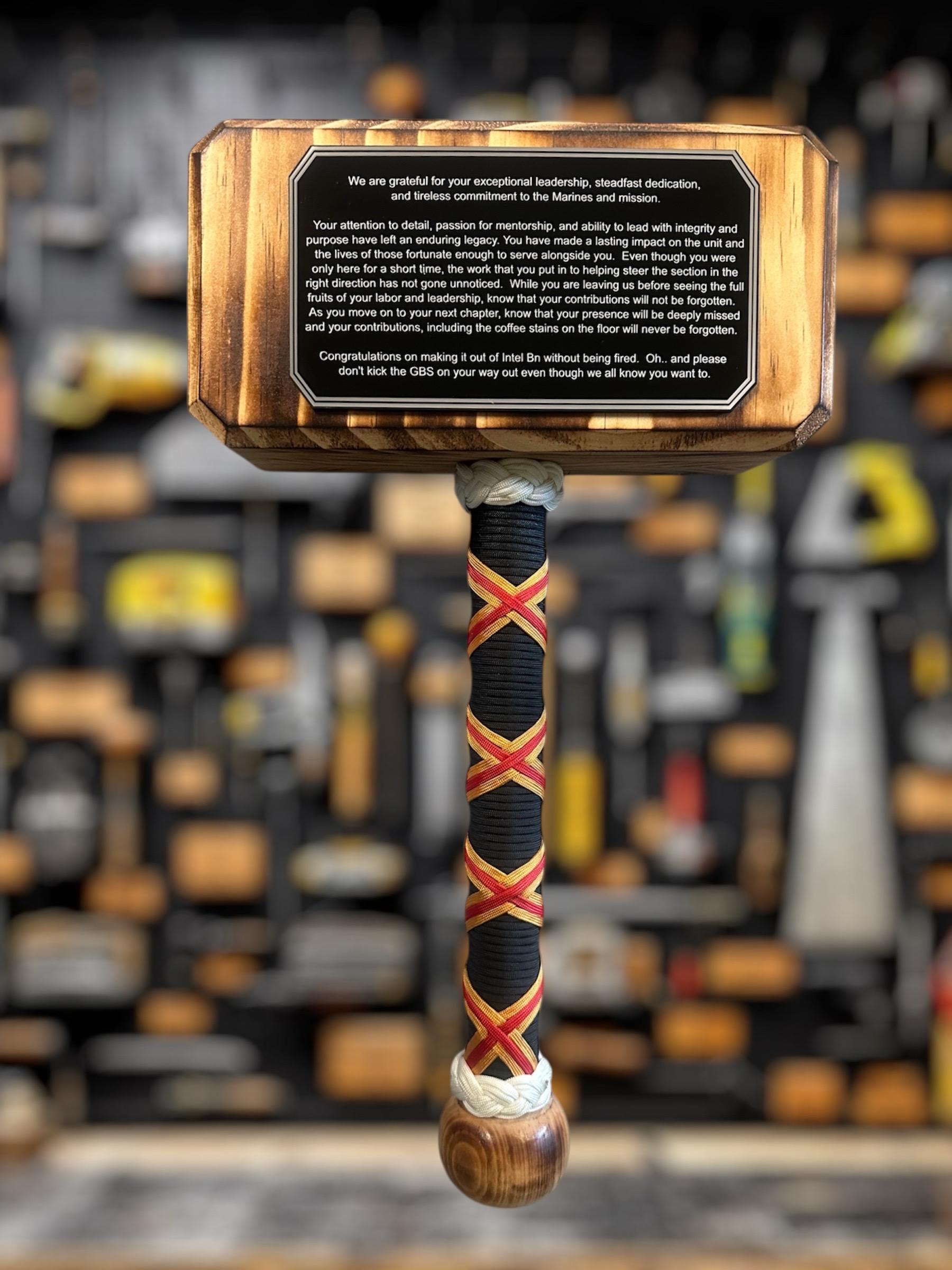 Military Navy Coast Guard Thor Hammer Custom made, laser engraved to order personalization, custom paracord wrapped handle. FREE SHIPPING.