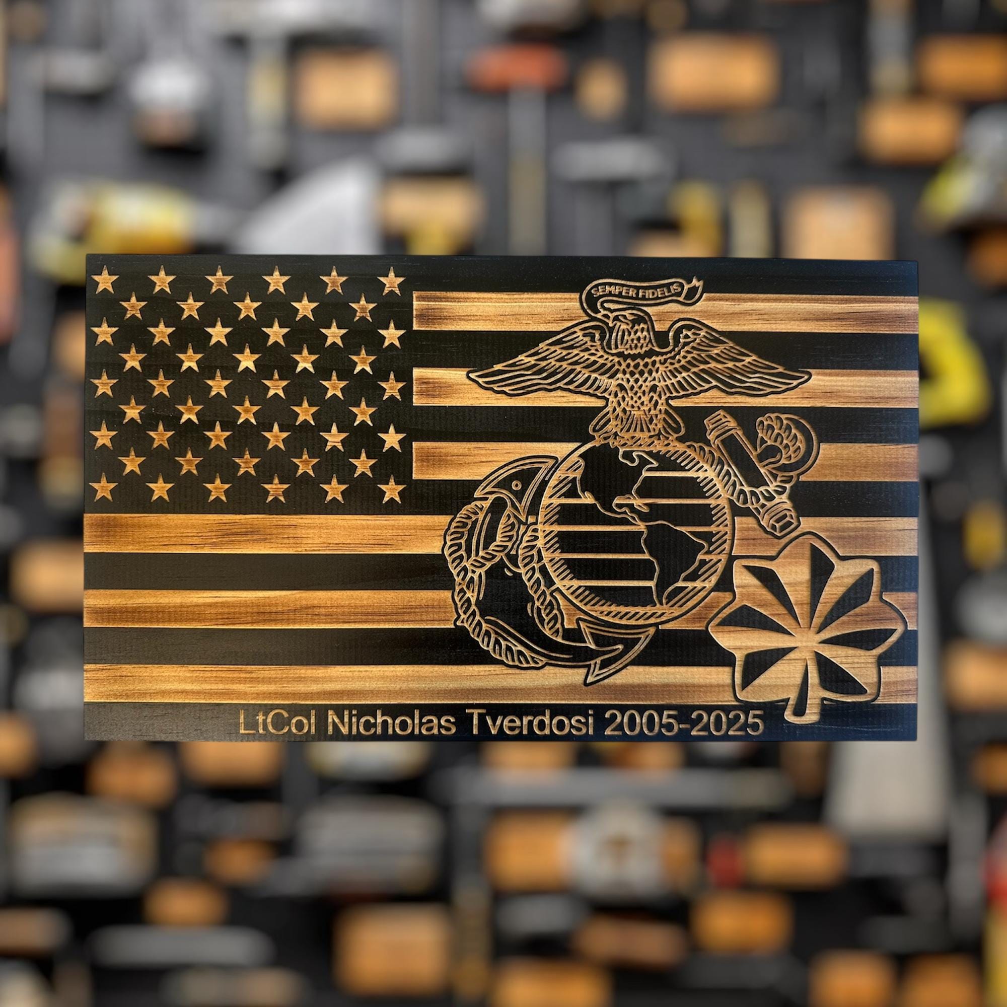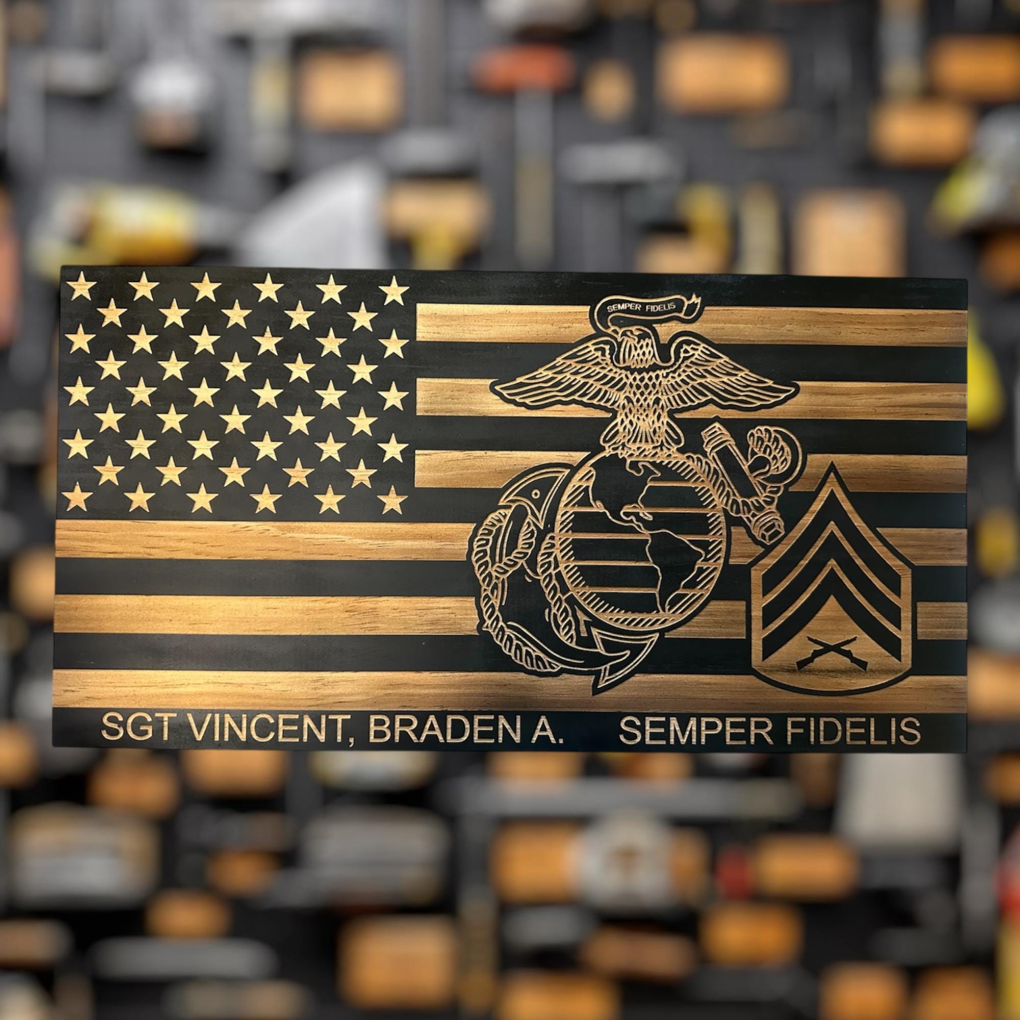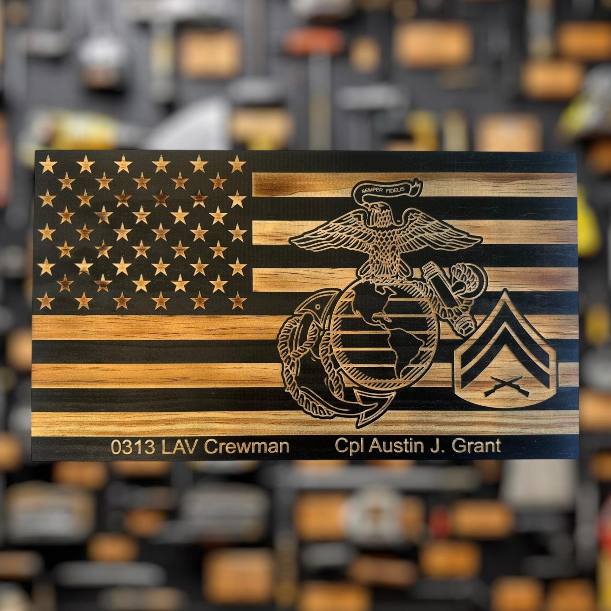 Flags come with (2) logo per piece which include branch logo and rank. If you would like additional logos, please purchase through the Personalized Flag Plaque listing.